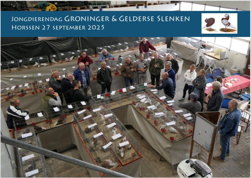 Om zeven uur ’s ochtends vertrokken we vanuit Dalen met een twintigtal Gelderse slenken. Om negen uur aangekomen, hebben we de duiven ingekooid, een kop koffie gedronken en om tien uur begonnen drie keurmeesters met de keuring.